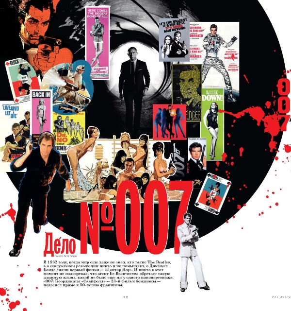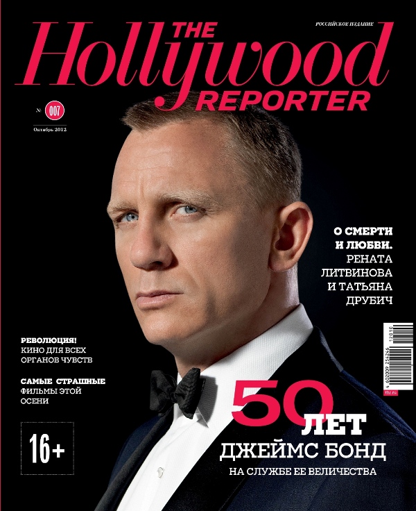 На обложке 128-страничного октябрьского номера The Hollywood Reporter — Дэниэл Крейг, который уже в третий раз перевоплотился в Джеймса Бонда в юбилейном для бондианы году: 50 лет на экранах. Главный материал номера — уникальное досье на Бонда: все исполнители роли знаменитого шпиона, все его помощники, гаджеты и подруги.