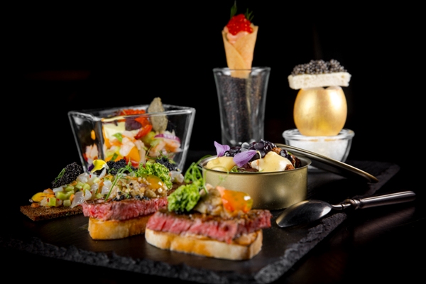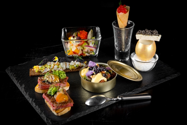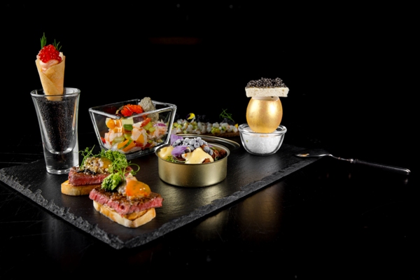 Он включает в себя креативную подачу блюд из 6 видов икры: Севиче из сибаса с икрой щуки, Салат из маринованных креветок с соусом васаби и икрой летучей рыбы, Корнет с муссом из копченого лосося с красной икрой, Суп из порея и картофеля с тостом из белого хлеба и осетровой малосольной икрой, Медальон из говядины с икрой из баклажана, Шоколадный бисквит с шоколадным кремом и соусом из карамели с «икрой» из ежевики. Каждый сет официанты выносят с настоящим фейерверком.