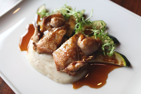 А после, не раздумывая, можно переходить к телячьей печени по-домашнему с картофелем (700 руб.) или жареной перепелке с пюре из цветной капусты с трюфелем (750 руб.). Неравнодушных к рыбе угощают дорадо в белом вине с овощами (1300 руб.) и мини-шашлычками с соусом терияки – есть из палтуса (500 руб.), а есть из чилийского сибаса (800 руб.). Тем же, кто не на шутку проголодается, рекомендуется обратить внимание на цыпленка в соусе карри с баклажанами темпура (700 руб.) и домашнее рагу из кролика с овощами (800 руб.) – вкусно и очень сытно.