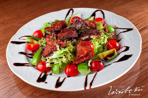 Как же связаны грузинская кухня и великий русский композитор, чье имя носит одноименное кафе? П.И.Чайковский трижды бывал в Тифлисе со своими концертами, а в один из этих визитов в 1885 году даже состоялась премьера его оперы «Мазепа». В интерьере нового ресторана отображены картины из жизни композитора, запечатленные во время этих поездок. Так, в центре помещения расположено большое изображение П.И Чайковского в компании друзей в одном из ресторанов Тифлиса. Атмосфера заведения позволяет Вам почувствовать себя за дружелюбным столом Петра Ильича Чайковского. Интерьер ресторана совмещает в себе европейский стиль и грузинское гостеприимство.