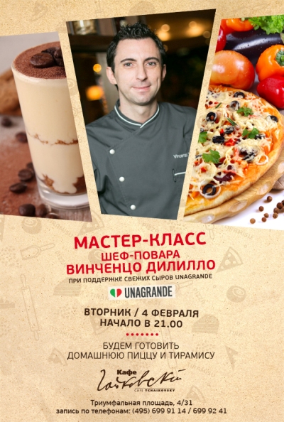 В кафе «Чайковский» при поддержке свежих сыров Unagrande и «Клуба любителей моцареллы» пройдет мастер-класс одного из лучших итальянских шеф-поваров и пиццайоло Москвы Винченцо Дилилло.