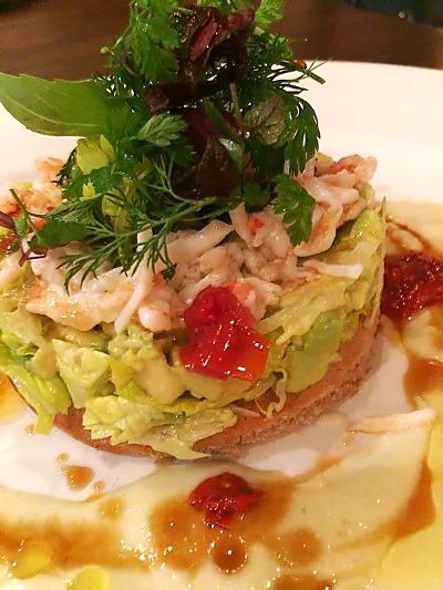 Оладьи из гречневой муки с авокадо и крабом (858 р.)