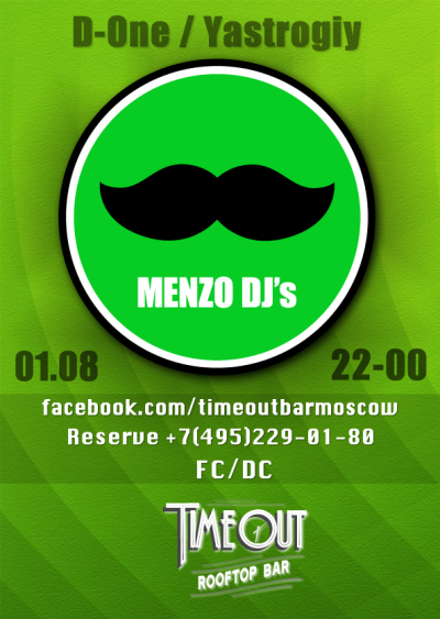 1 августа здесь отыграют свои сеты участники нашумевшей диджейской группировки Menzo DJs - Yastrogiy и D-One. Ребята хотя и молодые, но уже успели оставить след в московской клубно-барной жизни. Ярослав Строганов, он же Yastrogiy о своих сетах говорит так: "Легкое непопадание в бочку не мешает мне делать мои сеты вкусными и сочными". В его сетах крепкий коктейль из хитов MTV, неуемного панк-рока, хауса и биг-бита.