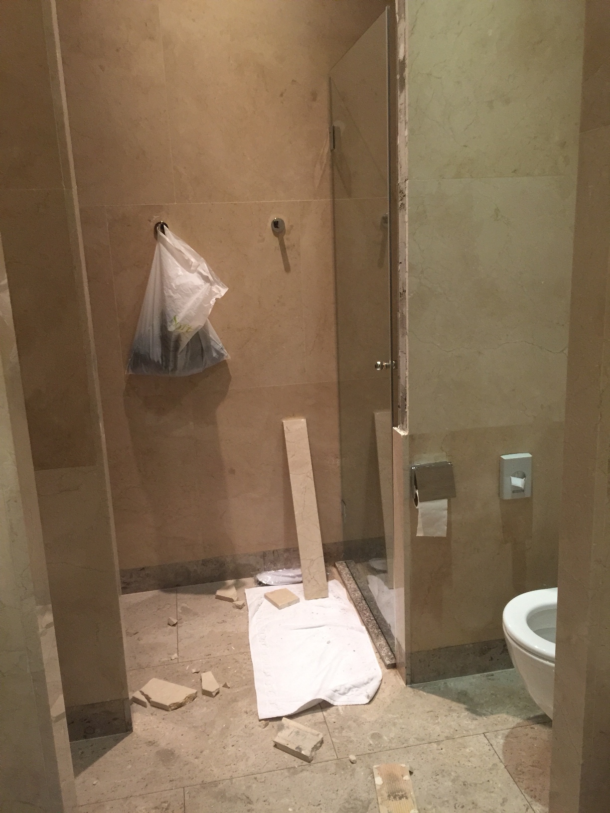 За час до концерта, артист готовился к выезду на площадку и принимал душ. В момент, когда он вышел из душевой кабины, на него обрушилась часть мраморной стены. От сильных увечий Михаила Захаровича спасло полотенце на голове и то обстоятельство, что кусок мрамора упал плашмя, а не торцом. Сильных внешних повреждений удалось избежать, но мелкие порезы все же остались на голове и плечах артиста. От неожиданности полученного удара Шуфутинский перенес сильный нервный стресс . Администрация отеля предложила вызвать скорую, но Михаилу Захаровичу не показалось, что это необходимо, да и концерт в зале филармонии должен был вот-вот начаться. Однако, без последствий для здоровья исполнителя инцидент не прошел. На следующий день, во время переезда, а потом перед концертом в Санкт-Петербурге, Шуфутинский почувствовал головокружение и головные боли. Вызванные врачи скорой помощи констатировали легкое сотрясение, составили акт с его жалобами на здоровье и рекомендовали артисту пройти обследование.