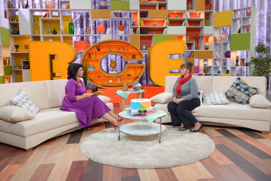 «Все» – гостиная в оранжевых тонах: стеллажи с книгами, статуэтками и вазами, уютный диван, кофейный столик. Здесь ведущая беседует со своими гостями.
