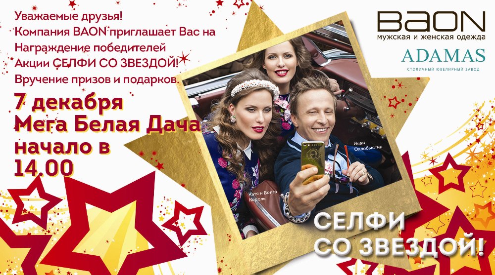 7 декабря в «Мега Белая дача»: Baon поздравит финалистов акции «Селфи со звездой»