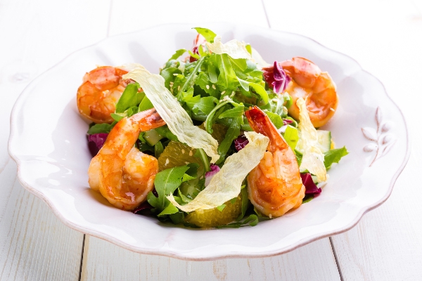 Салат из щавеля с креветками и имбирем