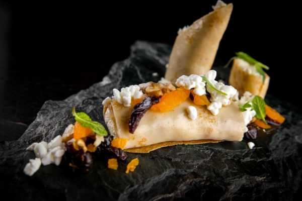 - блины с творогом, курагой и грецким орехом (300 р.).