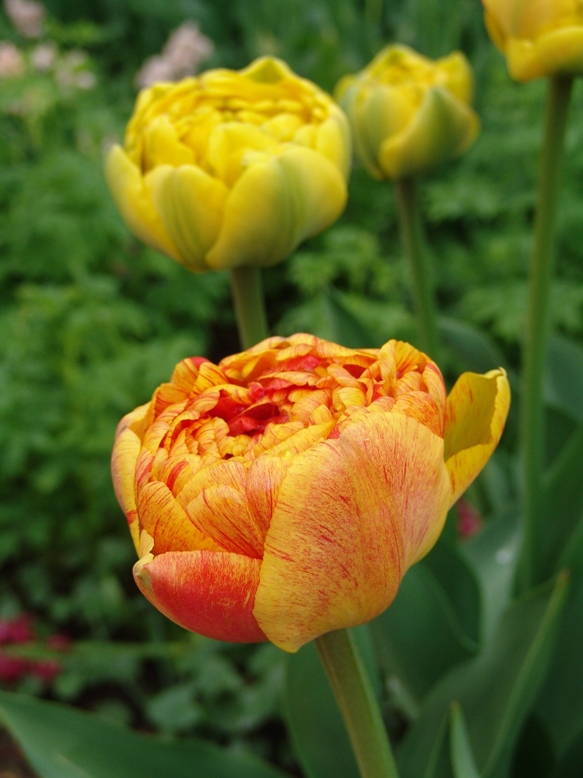 У нас тоже ожидаются сенсации. Впервые в саду распустятся такие новейшие достижения селекции, как полихромный тюльпан ‘Sensual Touch’ («чувственное прикосновение»), который многие любители пока видели только в интернете или на самых продвинутых европейских выставках — это один из первых сортов в новой группе «махровые бахромчатые» (Double Fringed). Будут и ставшие уже классическими, но от этого не менее удивительные сорта, например ‘Monsella’ — махровый, желтый в красную полоску, или ‘Belicia’ — полумахровый, жемчужно-белый с яркой малиновой каймой по краю лепестков.