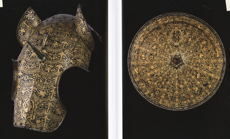Круглый щит и полушанфрон от парадного доспеха Великого Магистра Алофа де Виньякура. 1601-1622