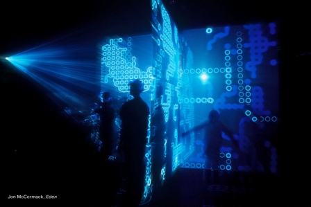 Часть художников выставки Lexus Hybrid Art’2012 обращается к теме оснований жизни и эволюции, одновременно изучая внутренние законы технологического прогресса. В знаковой инсталляции «Эдем» австралийский художник Джон Маккормак выращивает цивилизацию виртуальных существ, выживание которых зависит от благосклонности зрителя к их музыкальным талантам. «Эдем» – яркий пример саморазвивающейся интерактивной системы, вызвавшей интерес современных исследователей искусственной жизни и такого же разума.