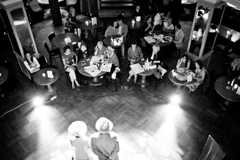 На этот раз «Театральные подмостки» кафе ставили спектакль по произведениям Чехова «Под занавесом». Гости кафе погрузились в страсти героев и переживали вместе с ними. Спектакль прошел на одном дыхании. Блестящая игра актеров вдохновила зрителей, так что они дважды вызвали артистов на бис.