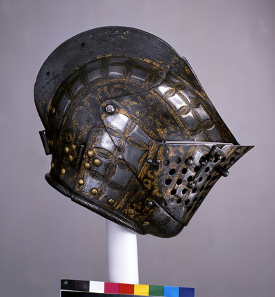 Шлем cэра Генри Ли. Украшен по рисункам Якоба Хальдера, Гринвич, Королевские мастерские, 1585 г.