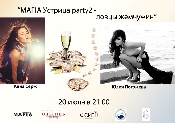 Возможность заказа корпоративных встреч в рамках игры "Mafia". Mафия - это поединок интеллектуалов, увлекательное шоу и психологический «триллер» в одном флаконе. Кто добьется победы в этот раз и останется в живых - коварные члены мафии или мирные жители? Приходи на "Mafia устрица party 2 - Ловцы жемчужин " и узнай это.