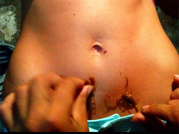 К счастью, в результате обошлось без трагедий, а фотосессия получилась даже несколько игривой. Справиться со скорпионами Водонаевой помогал работник ее виллы. И фотография, на которой смуглые мужские руки сажают смертельно ядовитых скорпионов на голый Аленин живот, прямо в зону бикини, выглядит весьма эротично.