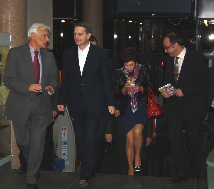 4 октября на спектакле «Back in the USSR!» в «Геликон-опере» побывал Председатель Государственной Думы России Сергей Нарышкин. Сергей Евгеньевич и его супруга Татьяна Сергеевна уже бывали в «Геликоне». В прошлом году Сергей Нарышкин письменно поддержал театр в сложных вопросах, связанных со зданием на Большой Никитской.