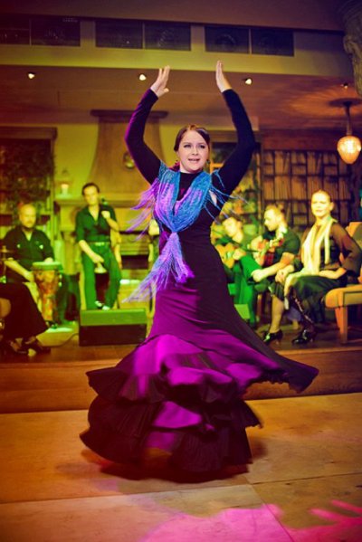 Весь вечер для гостей праздника - фламенко от Amigos Del Arte, потрясающий симбиоз музыки и танца, виртуозная динамичная гитара, необычный завораживающий голос и фантастическая перкуссия передают малейшие оттенки настроения и позволяют испытать весь спектр эмоциональных переживаний. Танец фламенко потрясает зрителя молниеносными дробями и плавностью рук, способных рассказать множество интереснейших историй.