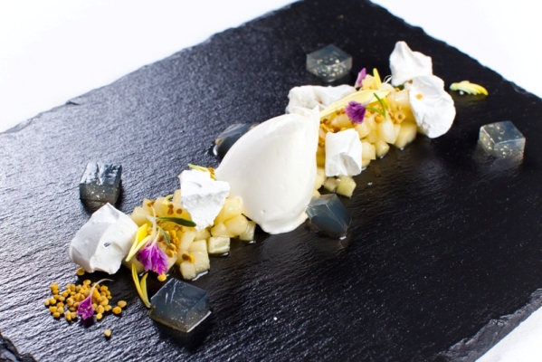 Тенденция использования сезонных продуктов, таких как оленина, чечевица, грибы, тушеные осенние овощи не противоречит основному кулинарному вектору в творчестве Адриана - свежести и легкости. Так, например, теплый тар-тар из яблок подается с мороженым из козьего сыра и медом, а насыщенный вкус крем-брюле из манго оттеняет кокосовый сорбет.