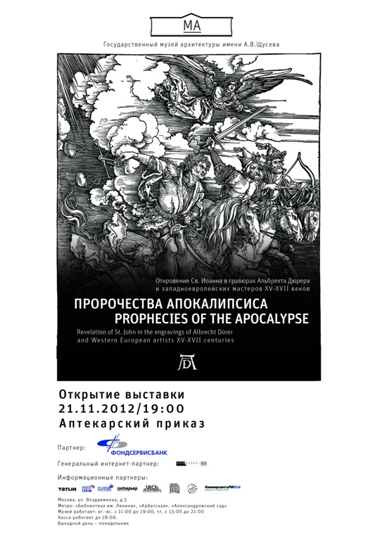Выставка представит 70 редких гравюр из московских частных собраний на тему Откровения св.Иоанна и его интерпретации в знаменитой серии Дюрера «Apocalypsis cum figuris» («Апокалипсис в образах»), впервые изданной в 1498 г.