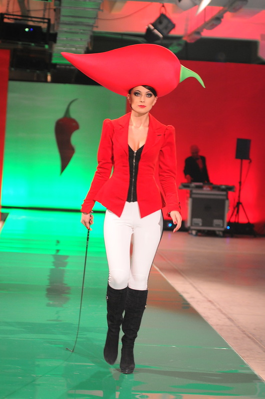 Коллекция обыгрывает «Перец» в восьми моделях под интригующими названиями: «Наездница», «Водитель машинки», «Девочка-романтик», «Попа-сердечко» и другие. Каждый наряд потрясает воображение по-своему. Костюм «Авиатор будущего» весит 5 кило, зато в набедренный перец-самолет встроен вращающийся пропеллер с движком, который заполняет модель воздухом. А костюм «ПерцеПтичка» побил рекорд длины — целых 4 метра!
