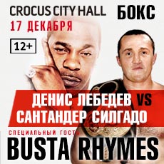 Зрителей ожидают нокауты и на ринге, и на сцене, мощный драйв и захватывающее шоу. Бой за звание чемпиона мира WBA Лебедев – Сильгадо, спецэффекты и уникальные инсталляции, концертные номера с участием российских и мировых звезд – Бьянки, Роя Джонса, Нейта Кэмбелла, Эвандера Холифилда и настоящего симфонического оркестра, а в кульминации – большой концерт от музыкально легенды Басты Раймса! Большой бокс и большой хип-хоп в «Крокус Сити Холл» – это будет незабываемо!