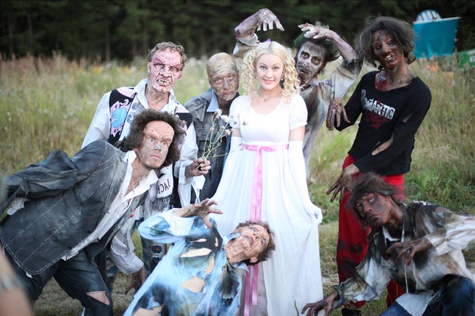 Яна Крайнова: «Была еще грандиозная фантазия на кладбище – римейк на клип «Thriller» Майкла Джексона, где зомби восстают и начинают танцевать! У нас была абсолютно такая же история. Мы снимали в чистом поле, вечером, на земле уже лежали туман и роса, кладбище, конечно, инсценировали – снимать на настоящем было бы наглостью…Мы выкапывали могилу, и тут мертвец оживал и вместе с зомби шел на нас… Это была эпическая съемка! Наш замечательный художник по гриму Эльмира Зотова постаралась на славу – ей надо было в кратчайшие сроки загримировать около 20 человек танцоров и главных героев. В этой фантазии моя героиня не танцевала, а наблюдала со стороны. А вот мой партнер Максим Радугин, который играет нового доктора Дениса Давыдова, ездил заранее на репетиции с хореографом, потом еще на месте неоднократно этот танец репетировал».