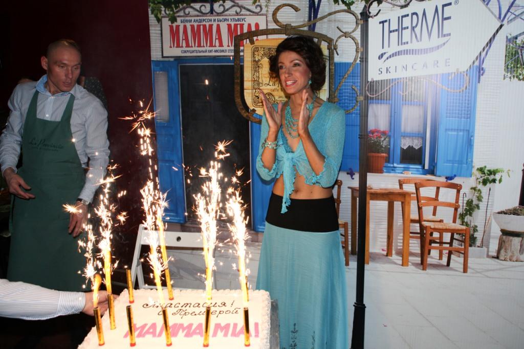 Премьера Анастасии в мюзикле Mamma Mia! совпала с датой ее рождения. Поздравить актрису собрались ее друзья и коллеги: Мария Берсенева, Елена Ищеева, Александр Носик, Ольга Субботина, Павел Хомский с супругой, Вячеслав Манучаров. Для них Макеева устроила настоящую вечеринку в греческом стиле, где представала то хозяйкой таверны, то королевой диско. В честь дебюта в мюзикле актрисе преподнесли огромный торт с надписью «Анастасия, с премьерой Mamma Mia!!».