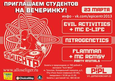 Будут не только суперзвезды 90-х, но и признанные мастера современного звучания. В программе – известные всем фанатам хардкора Evil Activities, Mc E-Life, Flamman, Mc Remsy, Party Animals и Nitrogenetics.