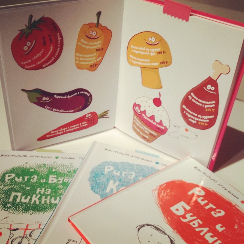 Сам формат детского меню в «Тинатин» тоже с сюрпризом – ведь страничка с блюдами – это первая страница в книге французского писателя Жана-Филиппа Арру-Виньо про приключения Риты и ее пса Бублика. Пятилетняя Рита – непоседа и командирша. А еще она обожает наряжаться. А ее щенок Бублик грызет все подряд, любит поспать и не прочь пожульничать. Разве с такими веселыми друзьями соскучишься?