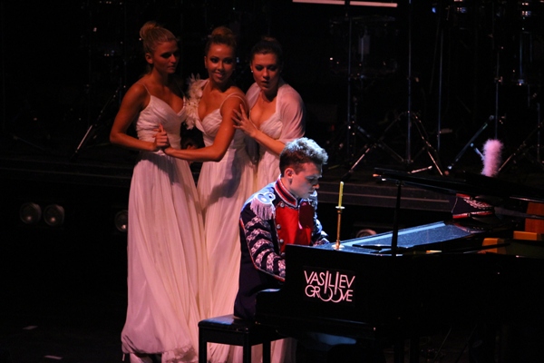 С первых минут концерта Vasiliev Groove «The Beat Of Evolution!» все присутствующие окунулись в удивительный спектакль, сплетающий историю со времени зарождения Вселенной до эпохи покорения космоса в единое и последовательное зрелище, в сочетании с безупречной сценографией и уникальными инструментами – маримбой, дождевыми флейтами, и разнообразными барабанами. Зрителям удалось побывать в первобытных джунглях, благодаря мощному видеоряду узнать, как зарождалась жизнь на нашей планете, отправится в средневековье, а затем ,перемотав время немного вперед, одержать вместе с Vasiliev Groove победу над Наполеоном, побывать на настоящем балу, а также станцевать чечетку под гангстерский антураж Чикаго 30-х годов прошлого века.