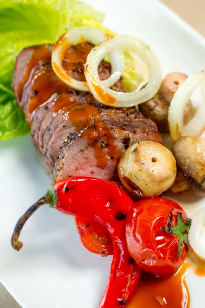 В меню появилось несколько новых салатов, в том числе салат Сулугуни с бакинскими помидорами и базиликом, а также салат с уткой и грушей. На горячее наш шеф советует попробовать котлеты из кролика с савойской капустой или фаршированный перец в томатном соусе “весна”.
