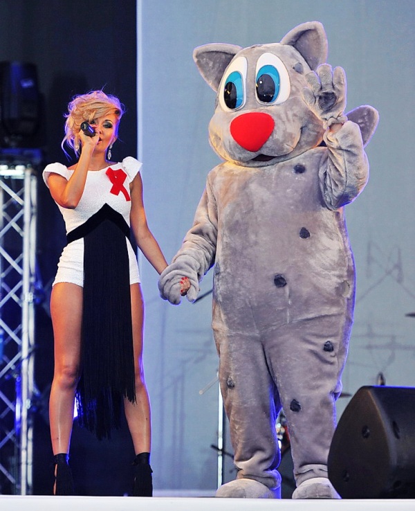 Помимо того, что певица вышла на сцену в эксклюзивном костюме, созданном по эскизам Российского дизайнера вечерних платьев – Александрой Сусловой, специально для «Red Ribbon» - Universiade 2013, House-дива появилась на сцене не одна, а в сопровождении гигантского Барсика Юны, являющимся главным символом Универсиады 2013. Вдвоем они выступили настолько ярко, что вызвали моментальную бурю эмоций среди зрителей, которые в знак солидарности в этот вечер наклеили на себя специальные стикеры «Красная Ленточка».