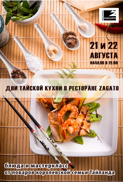 Фестиваль «Дни тайской кухни» объединит лучшие блюда тайской кухни от известного шеф-повара Сириван Сиридэ, которая является преподавателем и координатором проекта тайской кухни в Австрии, Словакии и Словении. Сириван Сиридэ обслуживала Королевскую семью Таиланда во время их визитов в Австрию, Южную Корею, Египет. Она посетит Москву во второй половине августа. В рамках фестиваля шеф-повар Сириван Сиридэ проведет мастер-класс для шеф-поваров российских ресторанов.