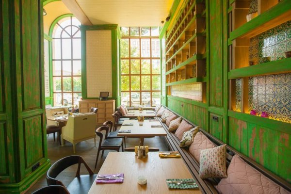 Прописка у ресторана – весьма солидная. «Кристиан» расположен на первом этаже жилого дома, примыкающего к левому крылу гостиницы «Украина». Монументальная архитектура знаменитой высотки эффектно контрастирует с интерьером и атмосферой «Кристиан». Переступая порог, попадаешь в другую страну. Уютную, милую, теплую, но – ироничную. За освещение здесь отвечают двухметровые люди-торшеры с огромными треуголками-абажюрами на головах. Гости-друзья сидят за столами с нарисованными на них тарелками с ножом и вилкой по бокам. Блюда подаются на ребристой, неровной посуде из толстой керамики. Словно ее лепил гончар-самоучка. На деле это – эксклюзивная продукция ручной работы из Португалии. Бокалы прикидываются кубками, на которых присели веселые мушки...