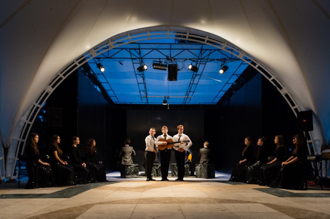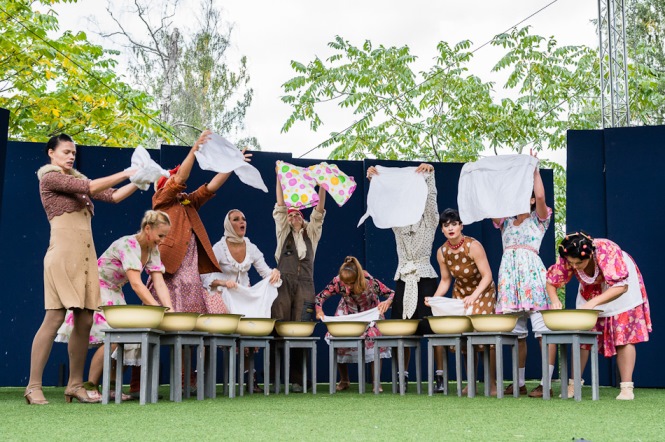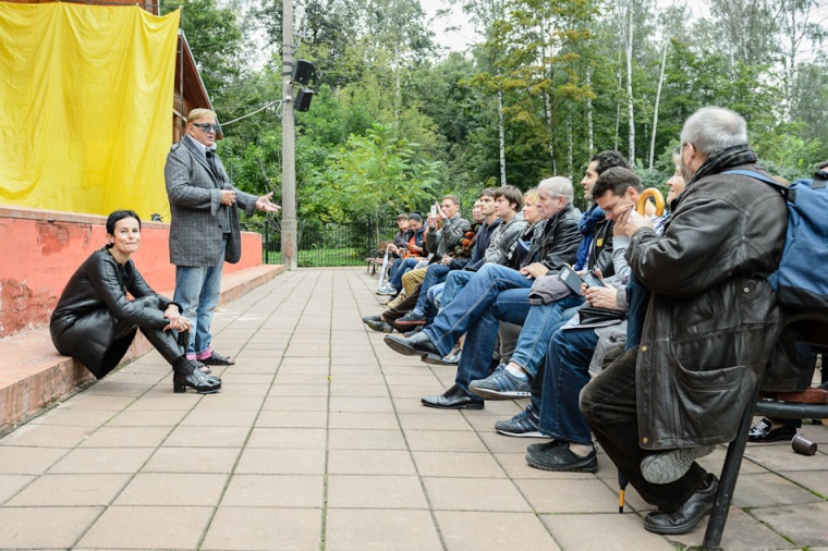 Роман Виктюк: «Парк «Сокольники» находится в шаговой доступности от Дома Солнца архитектора Мельникова, где скоро откроется после реконструкции наш театр. Это место пропитано энергией солнца, его волшебством и чистым творчеством. И именно здесь я провел сбор труппы перед новым сезоном — мне хотелось насытить артистов этой энергией и поделиться ею со зрителем, с таким чудесным, новым зрителем, к которому мы бесстрашно выходим, от которого мы не прячемся за толстыми пыльными кулисами. Такова идея театрального демарша InOut».