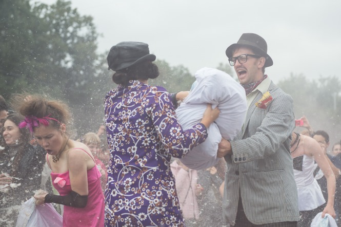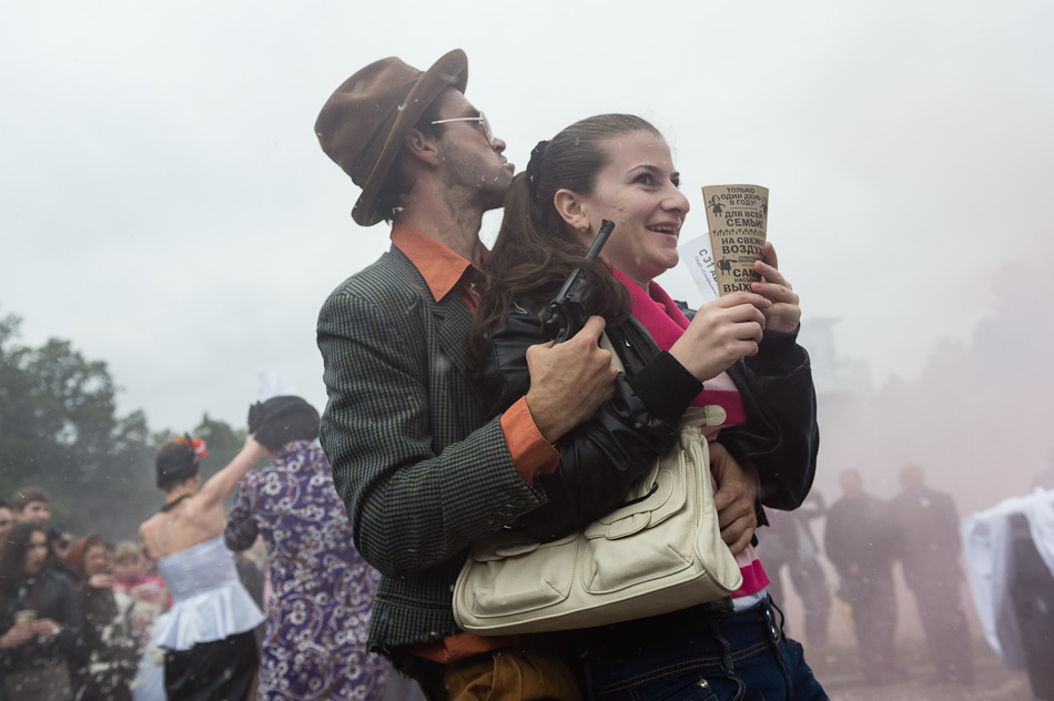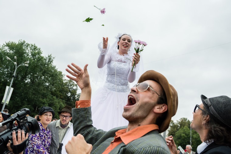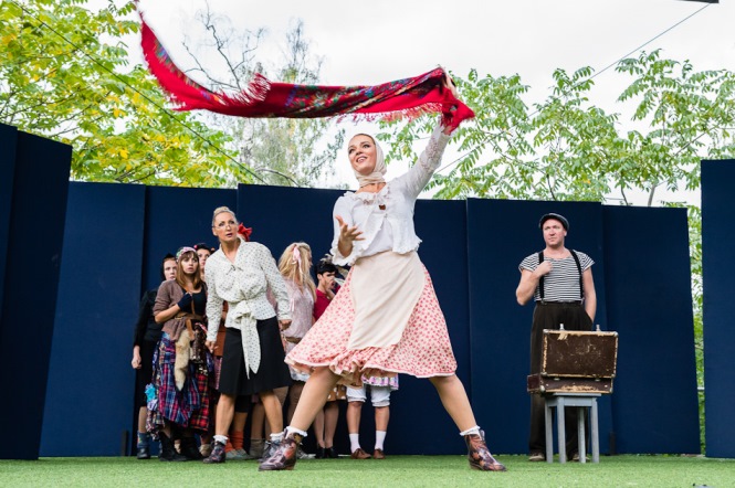 Шествующий перфоманс от «LiQUID theatre» «SVADьБА» продолжил фестиваль. В фантасмагоричный водоворот условного свадебного шествия были втянуты практически все посетители парка, даже случайные прохожие. Энергия, драйв и позитив щедро разливались по дорожкам Сокольников и настраивали зрителей на азартный лад — что дальше, куда бежать занимать свободные места…