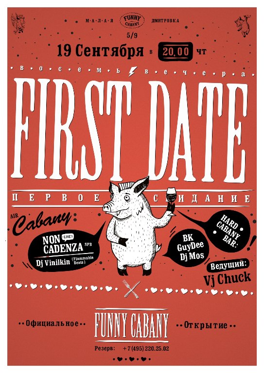 За атмосферу вечера отвечает непобедимый ведущий VJ Chuck, который будет проводить сумасшедшие конкурсы, прогуливаясь вместе с вами по владениям Фани Алексеевича – маленького поросенка, который уже успел стать кумиром всех гостей.