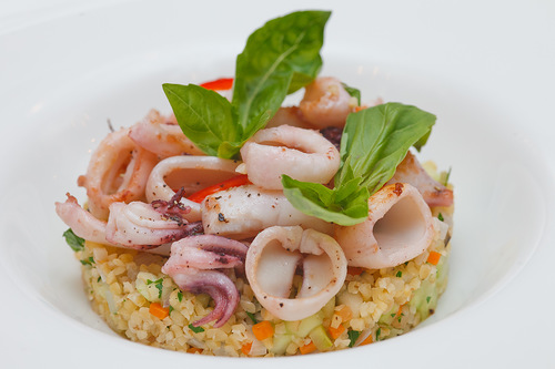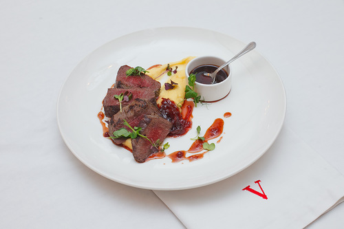 Любители морепродуктов могут отведать жареных мини-кальмаров с овощным булгуром или кусочки жареного осьминога в томатном соусе с картофелем. Не знает нареканий и запеченный в тесте фаршированный цыпленок. Но главная вкусная новинка – филе оленя с клюквенным соусом и картофельным пюре.