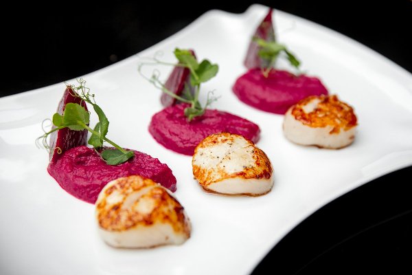 Раздел супов также пополнился гороховым крем-супом с подкопченным лососем. Морские гребешки, обжаренные на гриле с соусом из сладкой свеклы - прекрасный выбор в качестве горячей закуски.