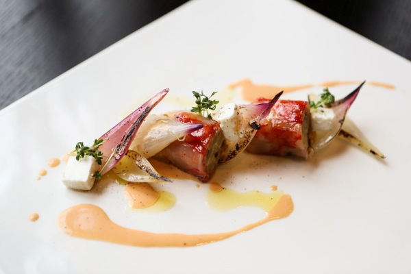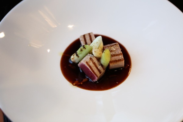 • Тунец blue fin с мини пореем в соусе из красного вина