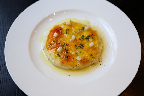 • Хрустящие гребешки миланезе, фаршированные копченым сыром буффало с креветочным соусом