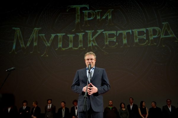 Новую экранизацию «Трех мушкетеров» представила публике съемочная группа в составе: режиссер и продюсер Сергей Жигунов, продюсер Алексей Рязанцев, композитор Алексей Шелыгин, актеры Юрий Чурсин, Алексей Макаров, Павел Баршак, Филипп Янковский, Константин Лавроненко, Виктор Раков, Владимир Этуш, Владимир Зайцев, Екатерина Вилкова, Анна Старшенбаум. Сергей Жигунов, выступая перед показом, поблагодарил всех, кто осуществил его давнее желание – снять фильм в качестве режиссера. А еще пошутил: «Журналисты меня убедили, что я с детства мечтал экранизировать «Трёх мушкетеров». Что ж, я и сам теперь в это верю!».