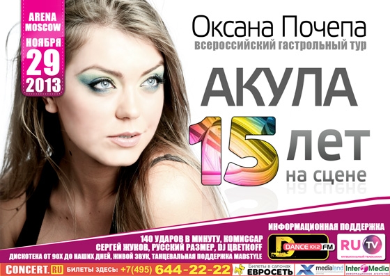 26 ноября 2013 Юбилейный концерт Оксаны Почепа: «Акула – 15 лет на сцене»