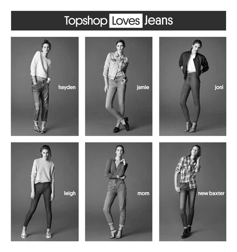 С февраля 2014 года джинсовую линейку Topshop представляют 7 моделей: