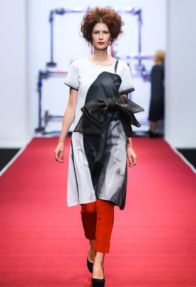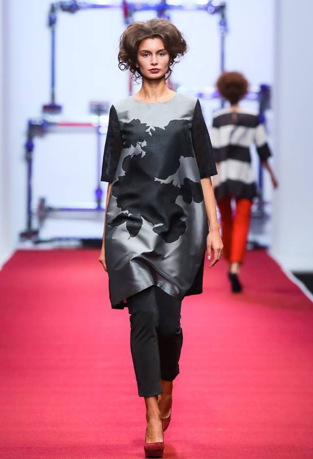 В своей коллекции дизайнер сочетает авторские принты, оптические иллюзии из ломанных и размытых линий и сложные формы. В цветовом отношении Сысоев остался верен черно-белой гамме с использованием индустриального серого и глубокого красного.
