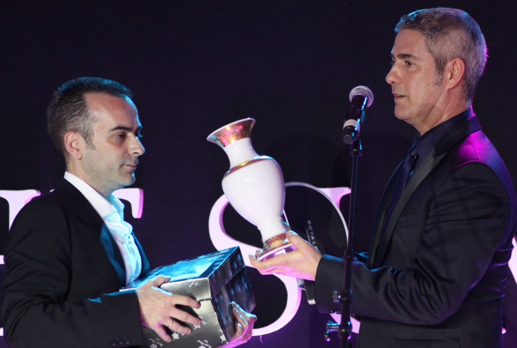 Генеральный директор компании Palladio Interiors сеньор Эннио Гуццо вручает подарок итальянскому тенору Алессандро Сафина