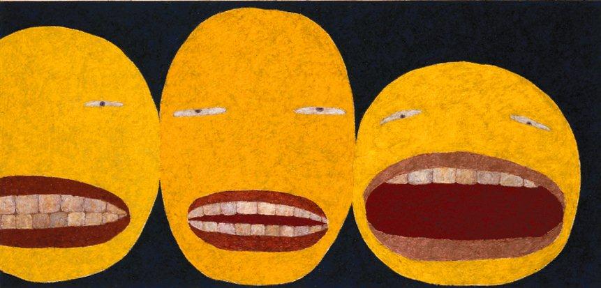 Странные круглоголовые персонажи, пристально смотрящие на зрителя, выражение альтер-эго художника. Прямой взгляд символизирует решительность и смелость, прячущийся – нежелание показывать свое душевное состояние, изображение нескольких пар глаз – это множественные личные проблемы и вопросы. Стиснутые зубы символизируют стойкость и оптимизм, с которыми Ватабики преодолевает внутренние сложности. Ее герои никогда не кричат. Нет сомнений в том, что работы Нобуко Ватабики тронут сердца многих людей, которые сегодня живут среди бесконечных жизненных трудностей и конфликтов.
