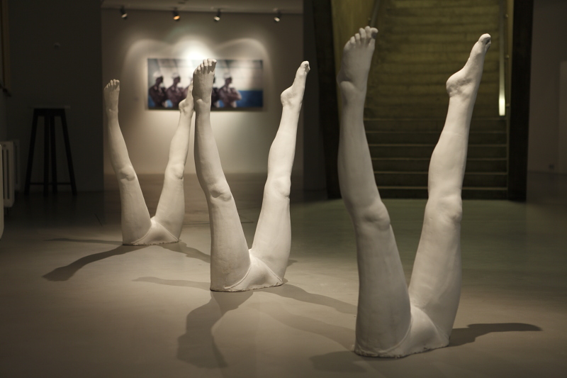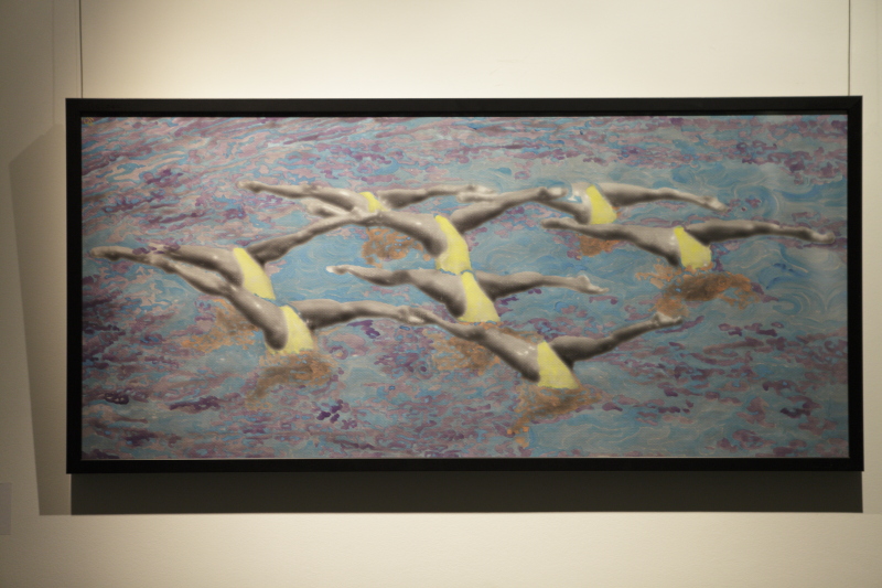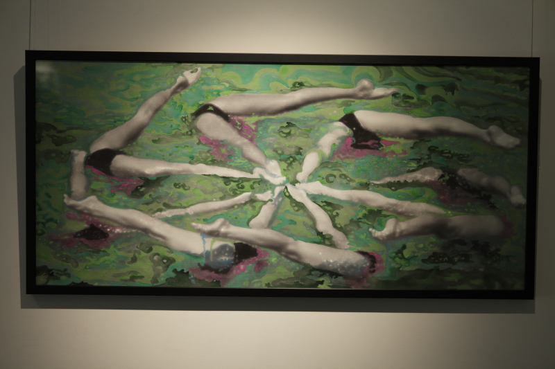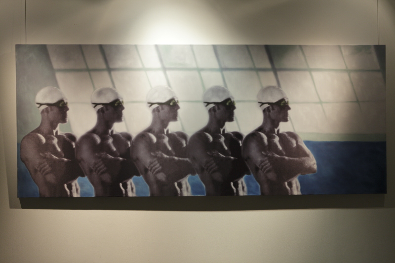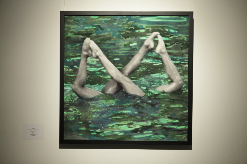 Правда, статике орнамента противостоит другая серия, созданная в пару “Исследованиям орнамента”. Если к синхронному плаванию Вита подходит с точки зрения мужского взгляда, то изображения мускулистых пловцов-мужчин в серии “Команда” отсылают нас к работам Лени Рифеншталь. Узорам женских ног противостоит либо естественность поз вылезающих из бассейна спортсменов, либо жесткая, напряженная статика. В этой части проекта намного сильнее чувствуется опыт общения Виты с кругом Новой Академии изящных искусств Санкт-Петербурга. В свое время художница отклонила приглашение Тимура Новикова присоединиться к группе постмодернистских неоклассиков. Эта часть проекта выглядит как интересный диалог с уже сложившейся и застывшей эстетикой неоакадемизма.