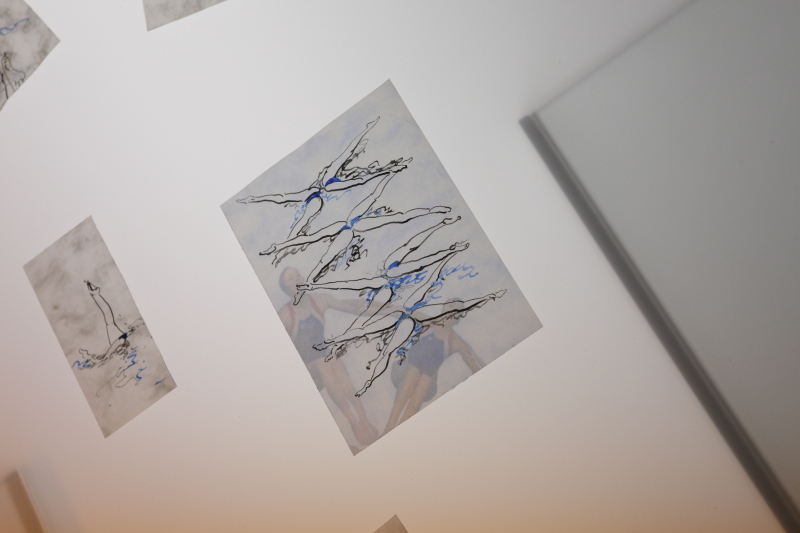 Найти орнамент в разнообразных позах спортсменок становится для художницы поводом для сравнения с органическими переплетениями модерна. Отпечатанные фотографии Вита раскрашивает акварелью в фиолетовые, лиловые и сиреневые тона, напоминающие о палитре главного художника русского “Art Nouveau” - Михаила Врубеля. Рябь на воде превращается у Виты в узор, схожий с лепной растительностью на потолке библиотеки в особняке Степана Рябушинского, построенном Федором Шехтелем. С другой стороны, в создании этой серии Вита вживается в роль современного импрессиониста. Серия “Методы исследования орнамента” вызывает мгновенные ассоциации с набросками и картинами Эдгара Дега. Нелишним будет вспомнить, что балет как искусство во времена Салона Отверженных также считался не вполне пристойным занятием. В среде танцовщиц богатые люди искали себе содержанок. Несмотря на ассоциации с возвышенными видами буржуазного досуга – оперой и концертами, работы Дега, особенно те, что выполнены в танцевальных классах, воспринимались современниками отчасти как репортажи из жизни низов. Мирискусническую и импрессионистскую тему у