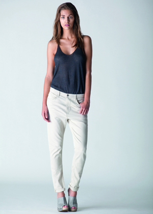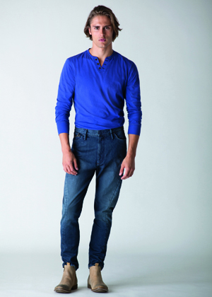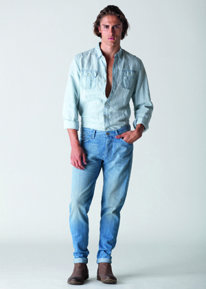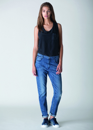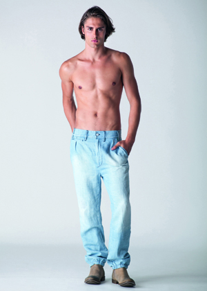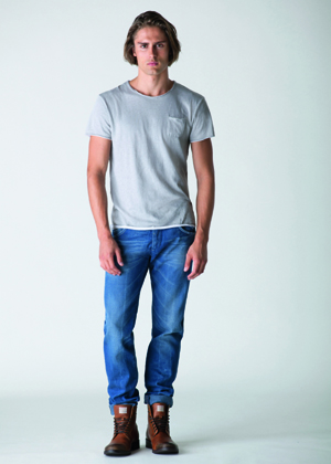 В основе линии ck One Jeans лежит новый силуэт мужских и женских моделей джинсов с заниженной посадкой на бедрах, зауженными к низу штанинами, скошенными боковыми швами для большей свободы движений. Модели из денима выполнены в винтажном стиле с эффектом потертости, придающий аутентичный вид, дополнены яркими металлическими деталями, кожаными или замшевыми заплатками, вышивкой в виде фирменного знака «Омега» на задних карманах. Линию дополняют мягкие трикотажные топы и футболки с контрастной фирменной лого- вышивкой.